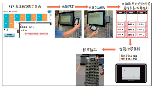 流程:MES备料指令→STS系统接收→信息写入RFID标签并绑定→RFID标签墨水屏显示拣料信息(物料、数量和位置等)。