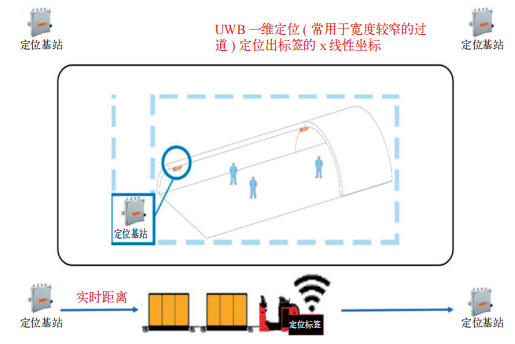 针对固定通道环境,采用成本效益更高的一维定位方案:在通道起点和终点部署UWB基站,通过测量标签到两个基站的距离差,确定牵引车在通道内的精确位置(精度<1m)。