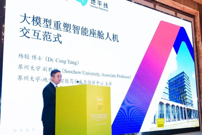 在会议期间,本套丛书主编杨聪博士同时还担任了智能出行分论坛主持人,并做了主题为“大模型重塑智能座舱人机交互范式”的专题报告,介绍了苏州大学-地平线智能驾驶生态创新中心在智能座舱领域的前沿研究成果。
