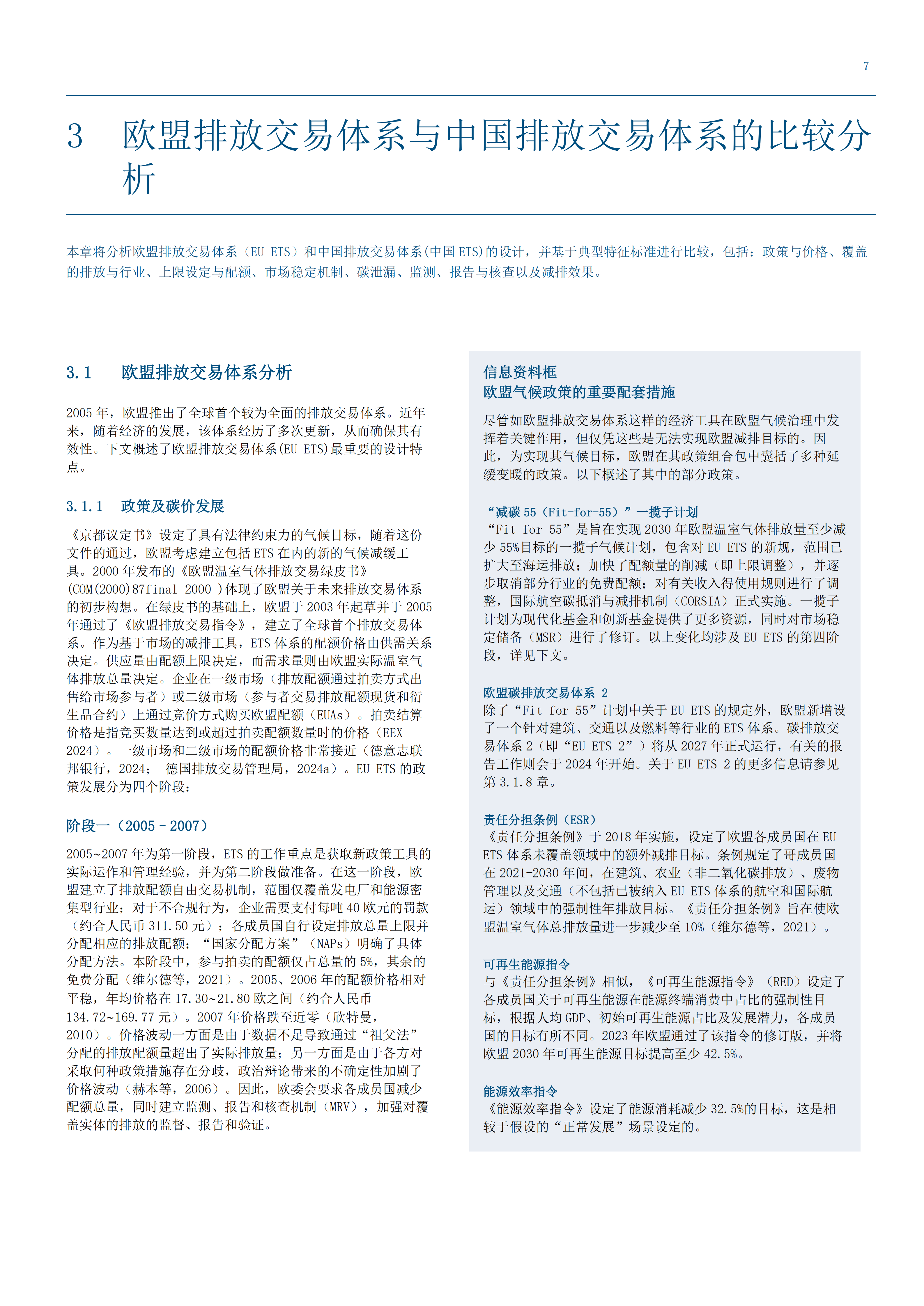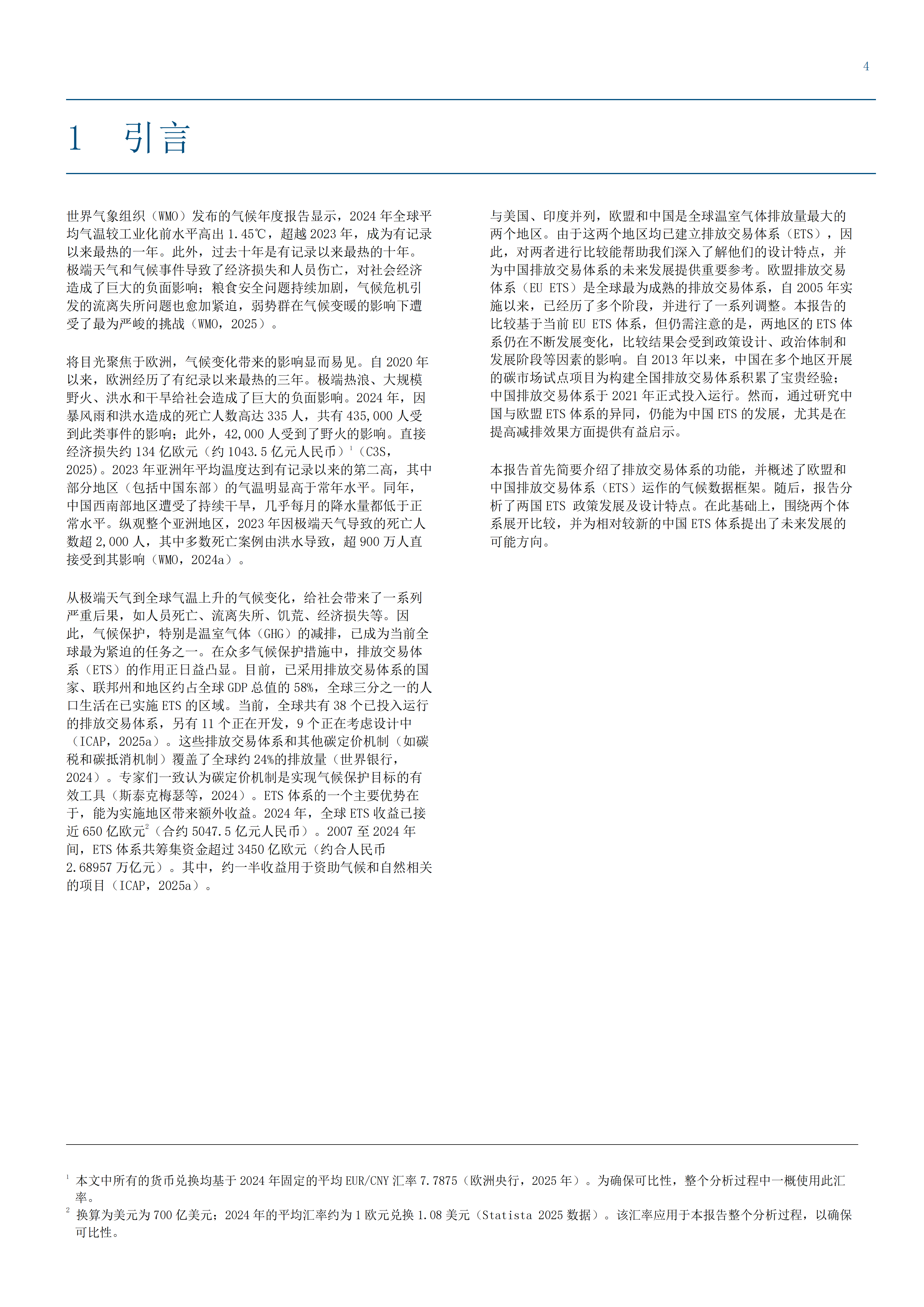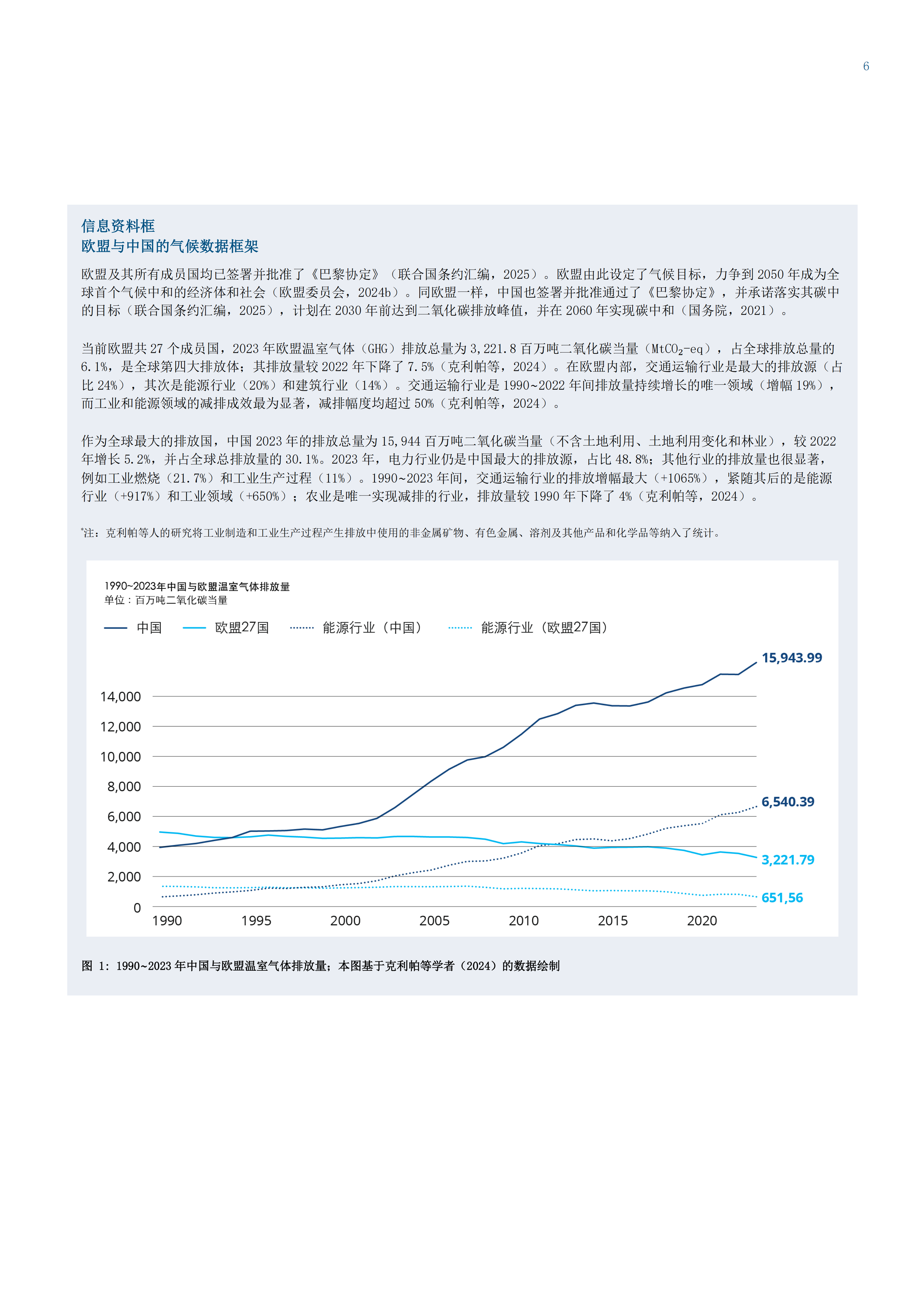 本报告首先简要介绍了排放交易体系的功能,并概述了欧盟和中国排放交易体系(ETS)运作的气候数据框架。随后,报告分析了两国E5 政策发展及设计特点。在此基础上,围绕两个体系展开比较,并为相对较新的中国ETS体系提出了未来发展的可能方向。