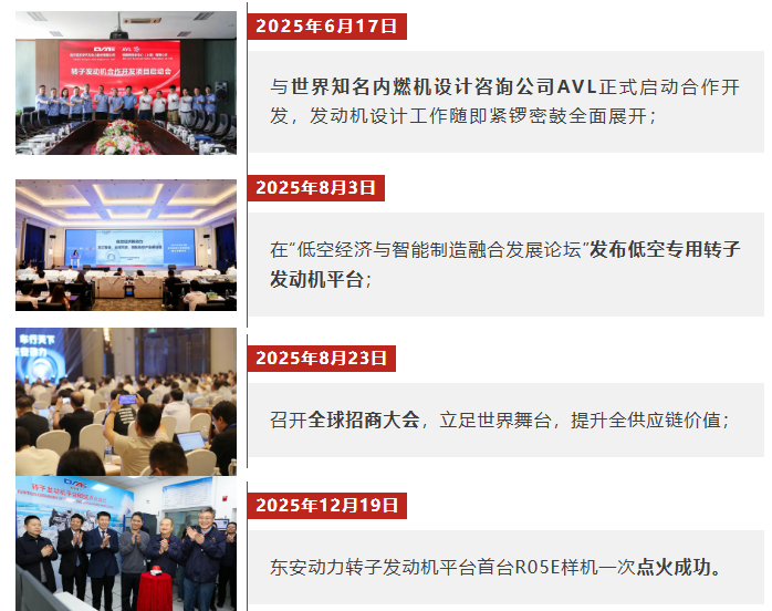 作为国内首家量产新能源汽车增程动力的企业,东安动力始终锚定科技创新,精准洞察低空经济和新能源汽车行业发展趋势,紧扣该领域小型化、轻量化、高功率、稳运转的核心需求,攻坚中高功率水冷高可靠转子发动机,立志成为转子发动机赛道引领者。深度聚焦低空飞行(飞行汽车、无人机及载人航空器)与新能源汽车领域,积极推进高功率转子发动机的研发与产业化。