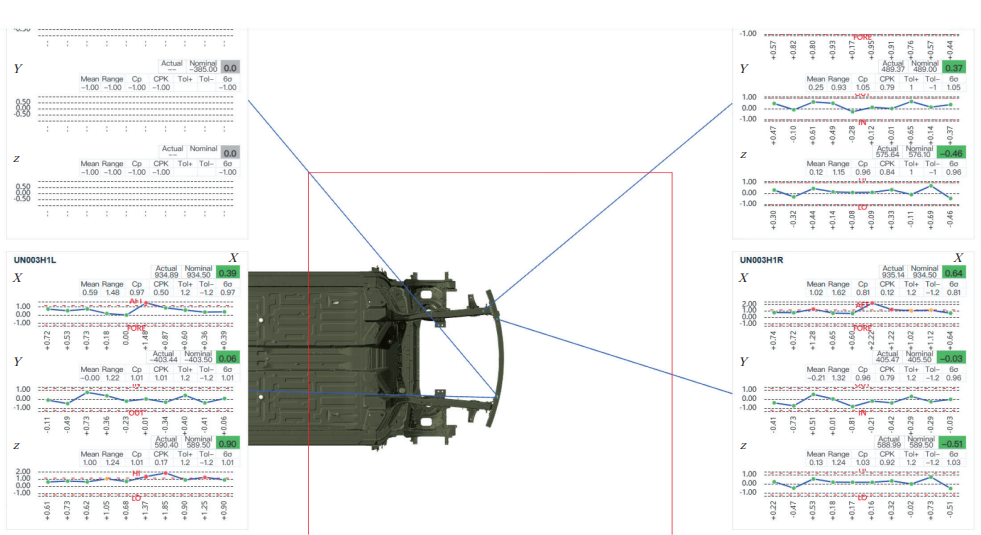 2)匹配分析:依据测量数据进行虚拟匹配,以减少返工情况。匹配分析有两种类型,即虚拟Cubing和虚拟PCF。