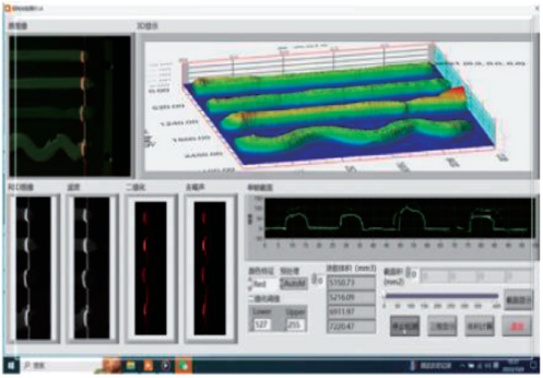 通过多排结构光覆盖方法,实现立体成像效果,如图7所示,可对涂胶体积进行有效测量。