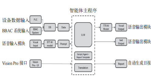 在本地服务器上开发基于大语言模型支持的智能体。该智能体与设备PLC连接后,使员工可以通过对话来获得生产、设备、辅料消耗、故障维修建议等信息。考虑到外籍员工,该智能体支持中英双语。具体功能包括但不限于: