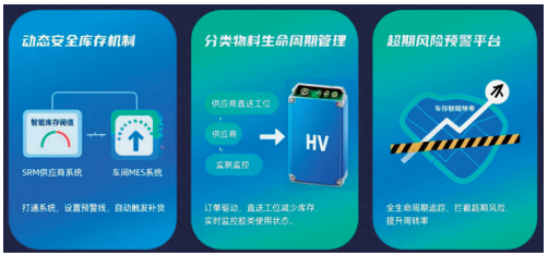 (1)动态安全库存机制:打通SRM供应商系统与车间MES系统,对多类关键零件设置“智能库存阈值”(如胶类物料按适当倍数日均用量设定预警线),需求波动时自动触发补货指令。