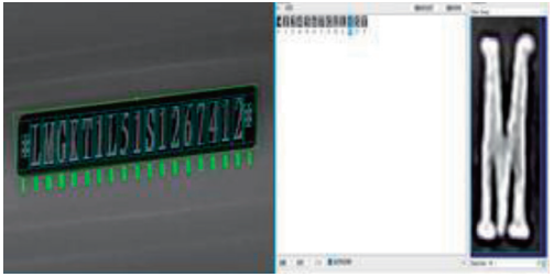 例如,在汽车生产中用于检查车辆的VIN(车辆识别代号)是否清晰、正确,或是在交通管理中用于自动识别车牌号码。该技术不仅能检测字符是否存在,还能精确读取字符内容,因此广泛应用于需要自动提取和校验文本信息的场景。实现此技术需要结合高质量的光学成像与高效的字符处理算法。尾盖VIN条码信息读取示例如图4所示。
