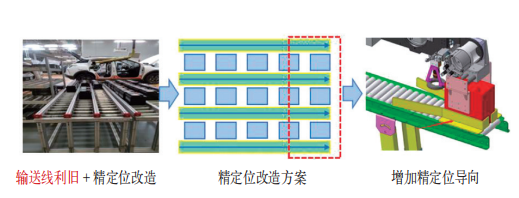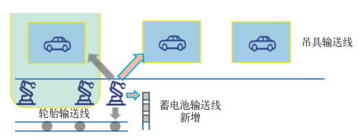 为降低成本,考虑进行利旧改造。在线边场地规划和器具架使用方面,应尽量避免新增。因此,工艺实施方案仅需考虑如何对现有器具及零件进行移位。应用智能制造技术实现防错功能后,蓄电池的排序也无须再严格遵循车辆上线顺序,可改为按固定货架摆放对应型号的蓄电池这种相对简单的方式。