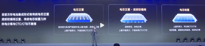 行业方形电芯PACK设计主要有三种形式:传统正置、底部防爆阀正置和倒置,但这些方案均无法兼顾热电分离与CTC/CTB兼容,安全性和强度存在短板。