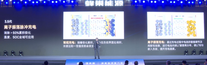蜂巢认为的3.5代离子振荡技术,从锂电池反应机理切入,通过能垒仿真和实验验证,锂离子得电子速率滞后电化学极化,以及液固相传输浓差极化。