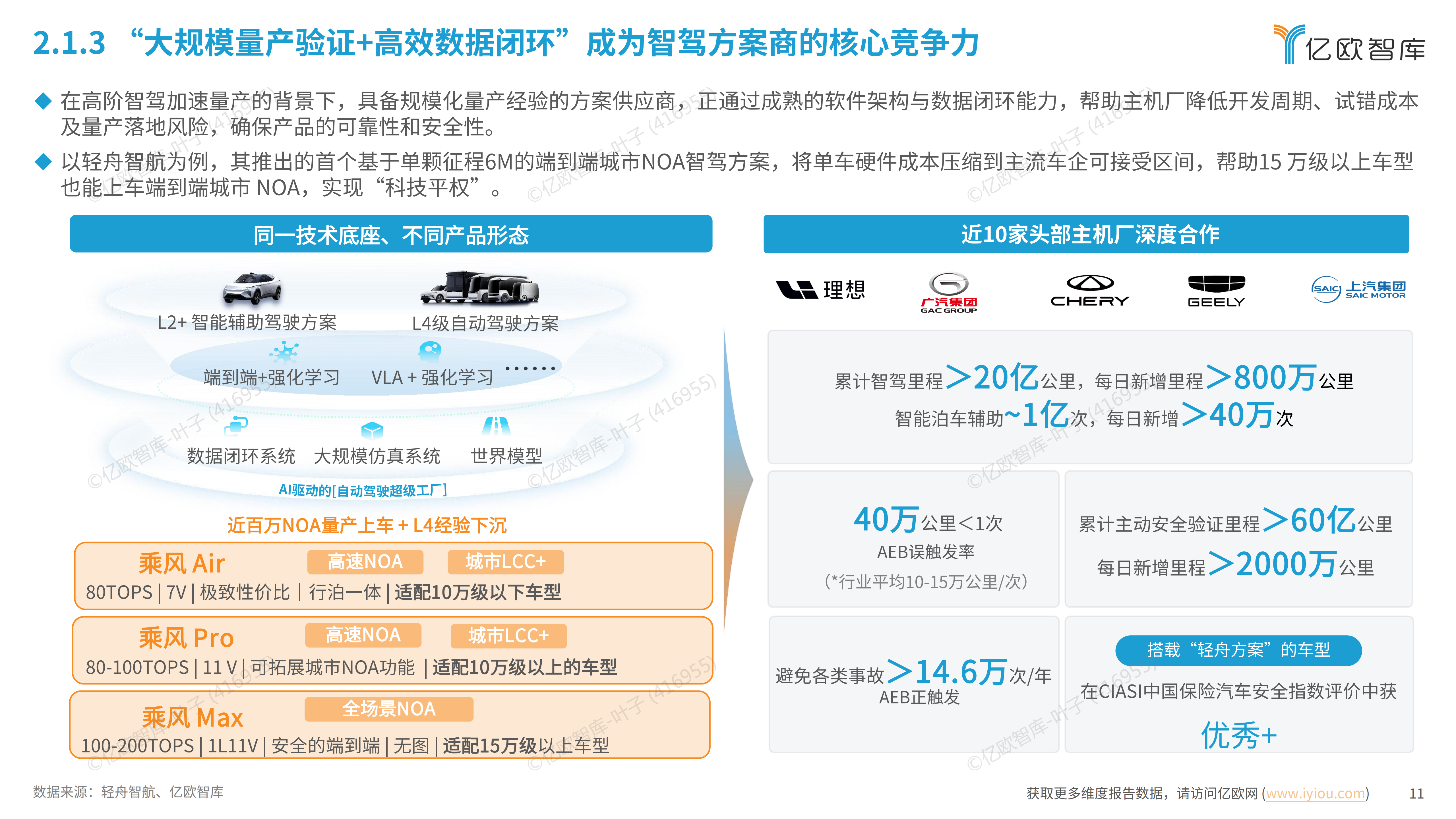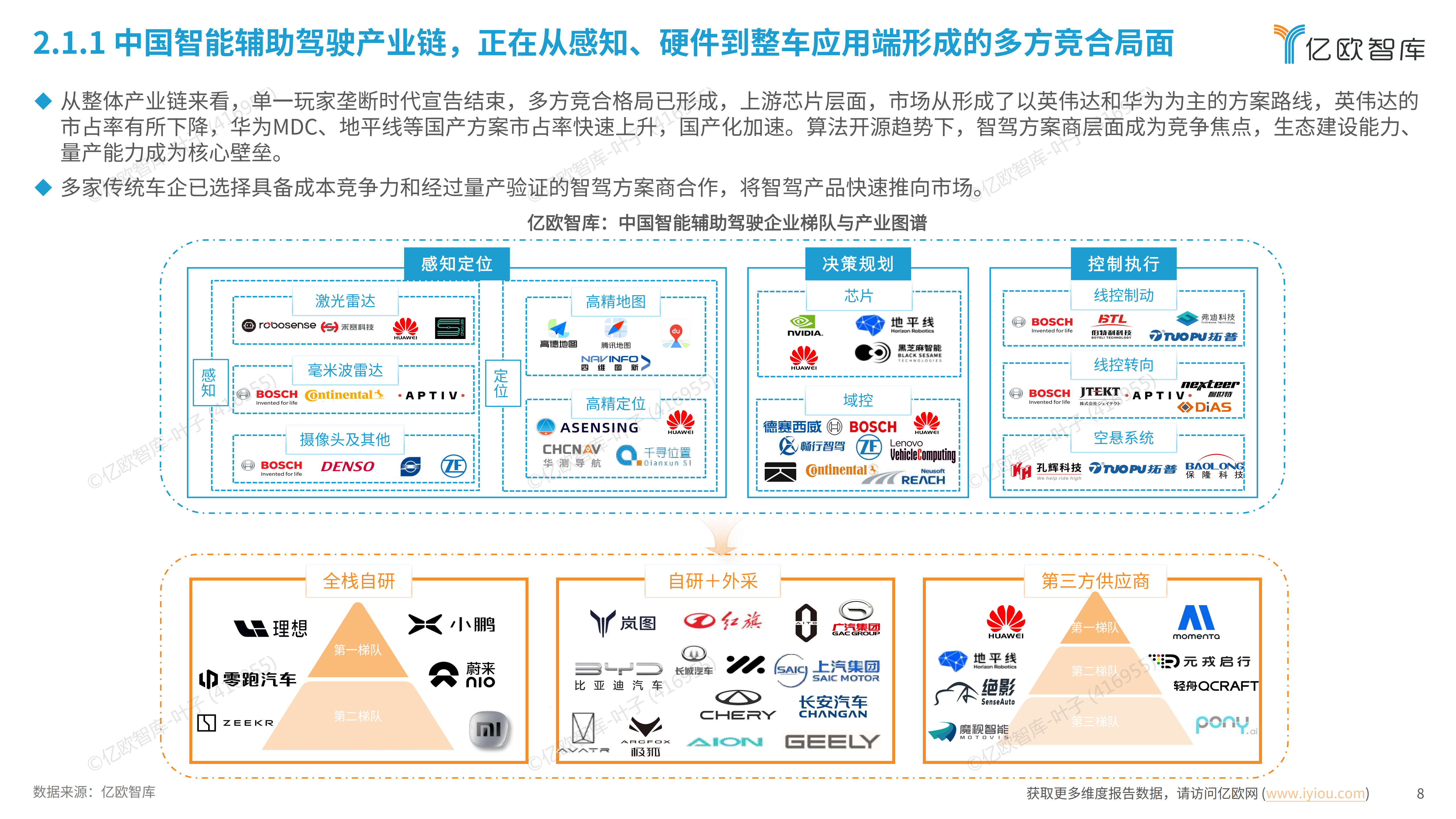 ●2025年,中国乘用车产业竞争将从单纯的价格战转向自研能力和快速落地能力的比拼。上游传感器与算力芯片的国产化提升,以及算法与算力平台、数据闭环的竞争深化,正在推动驾驶领域的产业链自主可控度提升。在L4应用车域,车队化运营能力和商业化验证已成为重要维度。