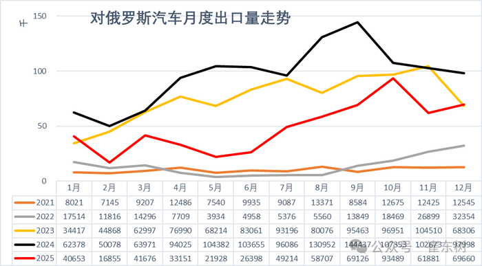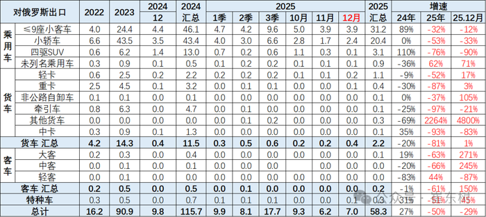 俄罗斯市场中国车企防风险意识提升,虽然全年俄罗斯国内销量下滑不大,但2025年全年我们对俄罗斯的出口下降幅度较大。