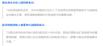 近日,佑驾创新(2431.HK)与易达资本(ewpartners)于香港正式签署谅解备忘录。双方将聚焦中东地区智能物流与出行升级需求,推进佑驾创新自主研发的无人物流车(Robovan)在沙特阿拉伯的落地应用。