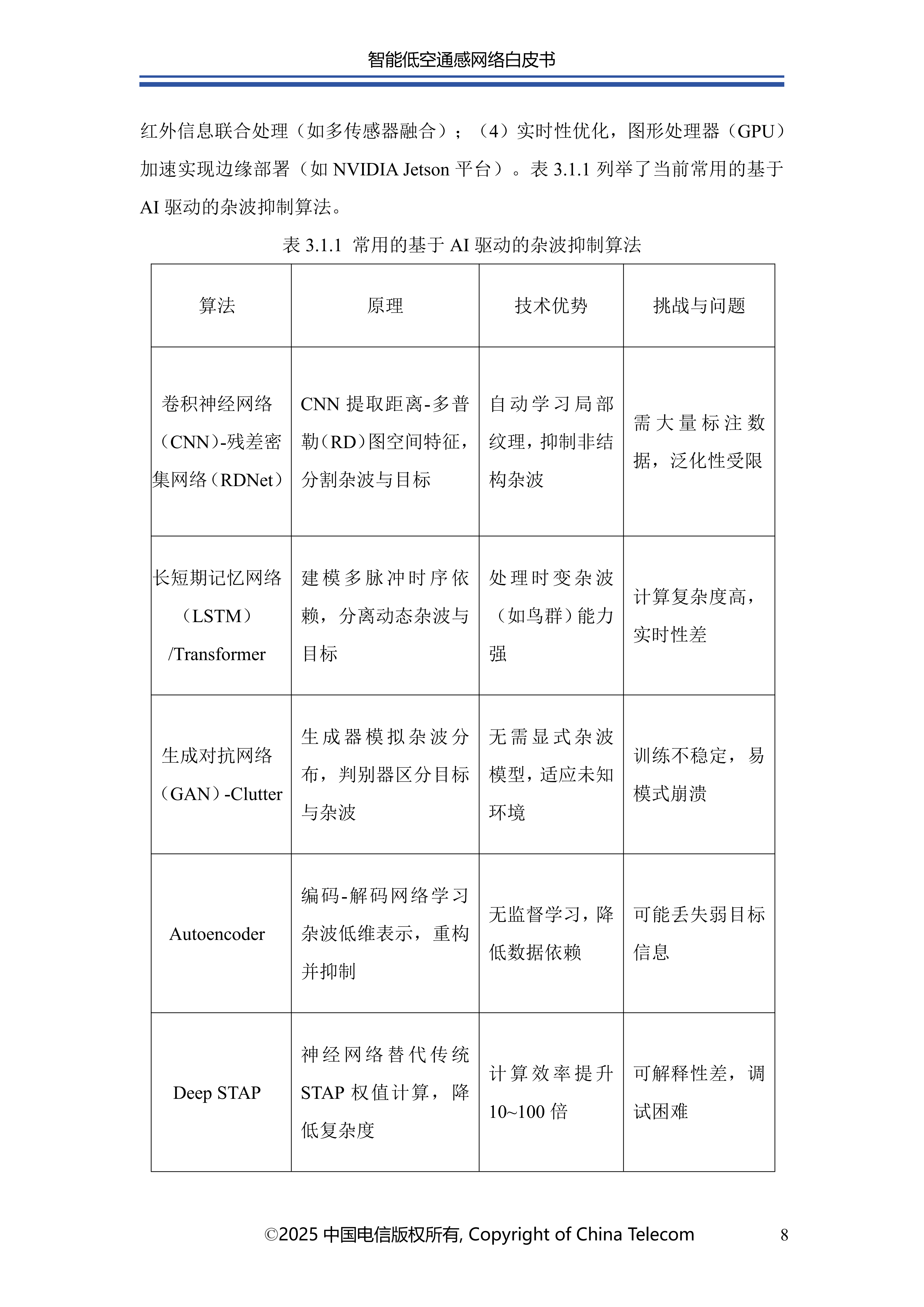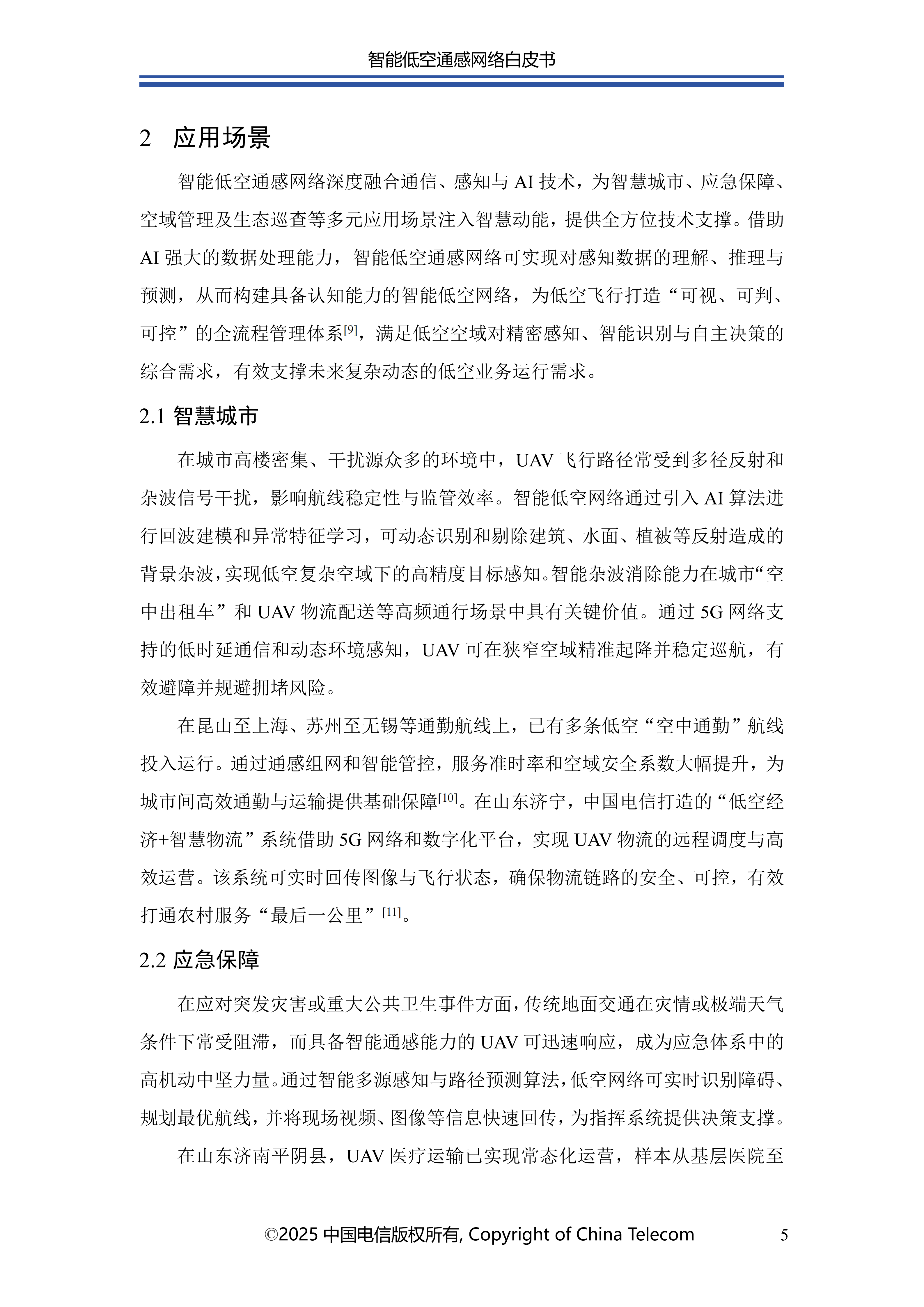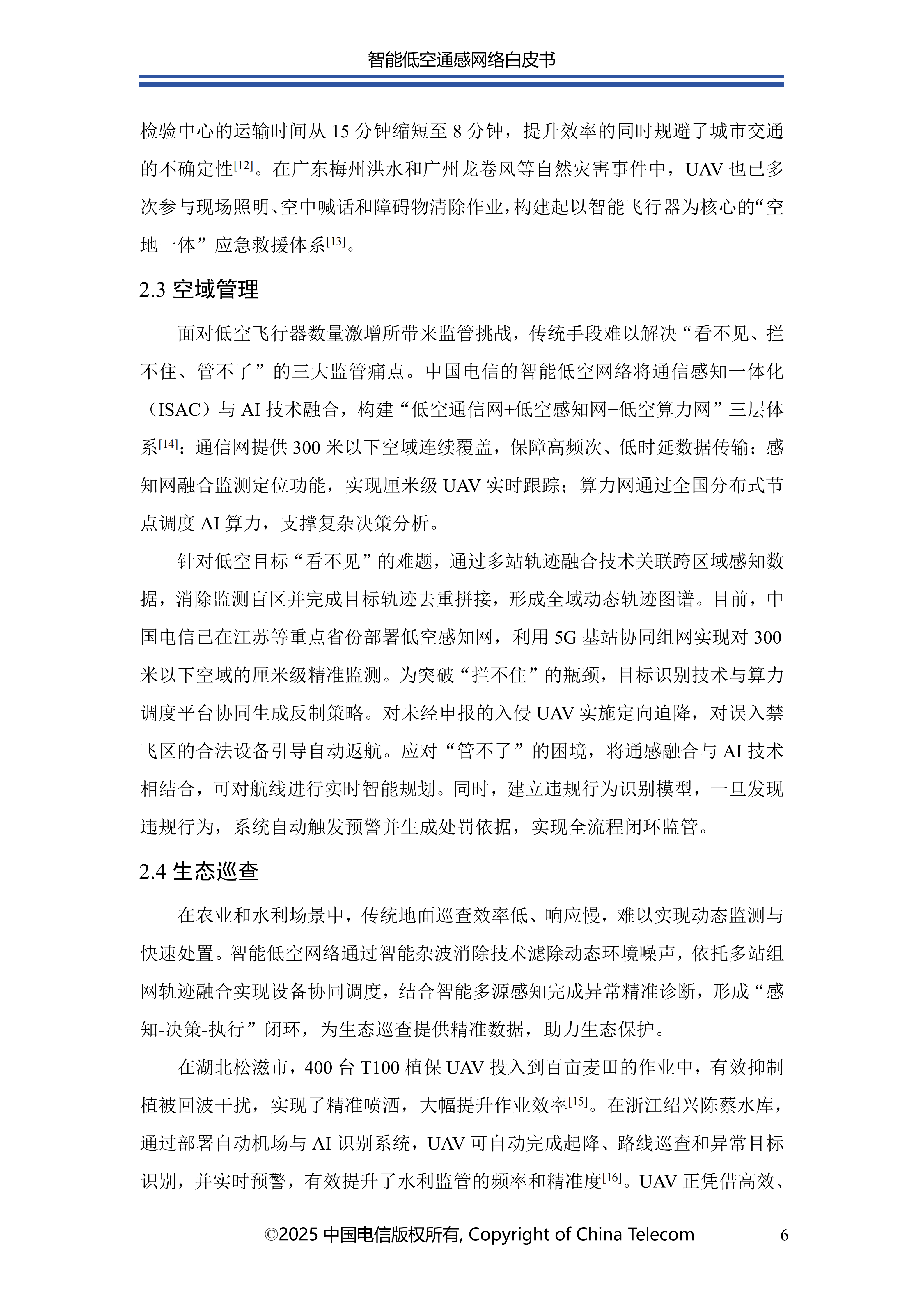 本白皮书首先阐述了智能低空通感网络的发展概况;其次介绍了智能低空通感网络的多种应用场景;随后针对应用场景所需的关键能力,分析了传统非智能通感技术面临的问题与挑战,进而提出创新性解决方案;在杂波抑制方面,提出了融合AI技术与传统算法的深度神经网络增强的空时自适应处理(STAP)算法,以实现智能杂波抑制;针对目标识别的难题,介绍了基于AI的UAV目标识别关键技术,保障对目标的精准识别;为应对目标检测与轨迹跟踪的挑战,提出了AI赋能的多站检测跟踪方案;此外,还创新性地提出了一种多源感知融合技术架构,有效提升了低空感知的可靠性;最后对智能低空通感网络的未来发展进行总结与展望。