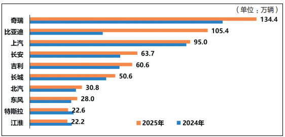 图2 2025年中国整车出口量前十位企业