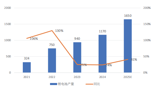 新能源汽车动力电池与新型储能电池是锂需求增长的核心驱动力。近年来新能源汽车与新型储能快速发展,带动动力电池与储能锂电池出货量增长,推动锂行业扩张,如图3所示。2025年以来,尤其储能市场加速发展,进一步支撑锂需求上行。工信部数据显示,2024年全国锂电池总产量1170GW·h,同比增长24%;其中动力型、储能型、消费型锂电池产量分别为826GW·h、260GW·h、84GW·h,动力电池占比达70.60%。