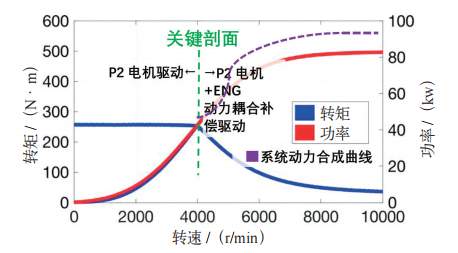 图2 P2电机(三相永磁同步)与ENG动力耦合曲线