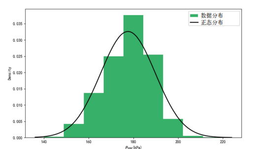 对驱动单元下线测量的离合器硬件特征参数 PHW 进行统计分析,可以通过绘制直方图可视化分布特性, 同时采用描述性统计与假设检验(如 K-S 检验)确定 其分布类型(正态分布、对数正态分布等),从而拟合出分布曲线,如图 4 所示。