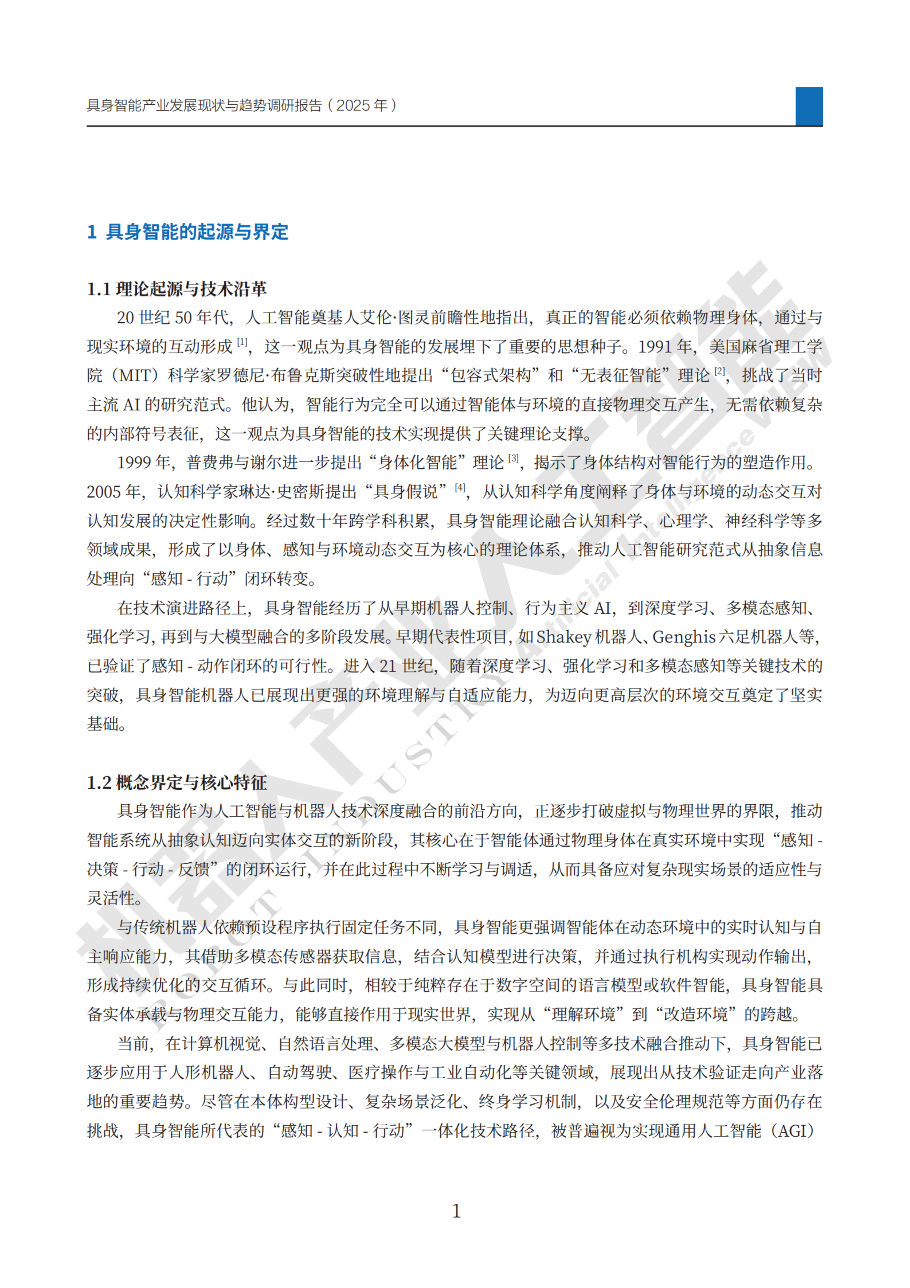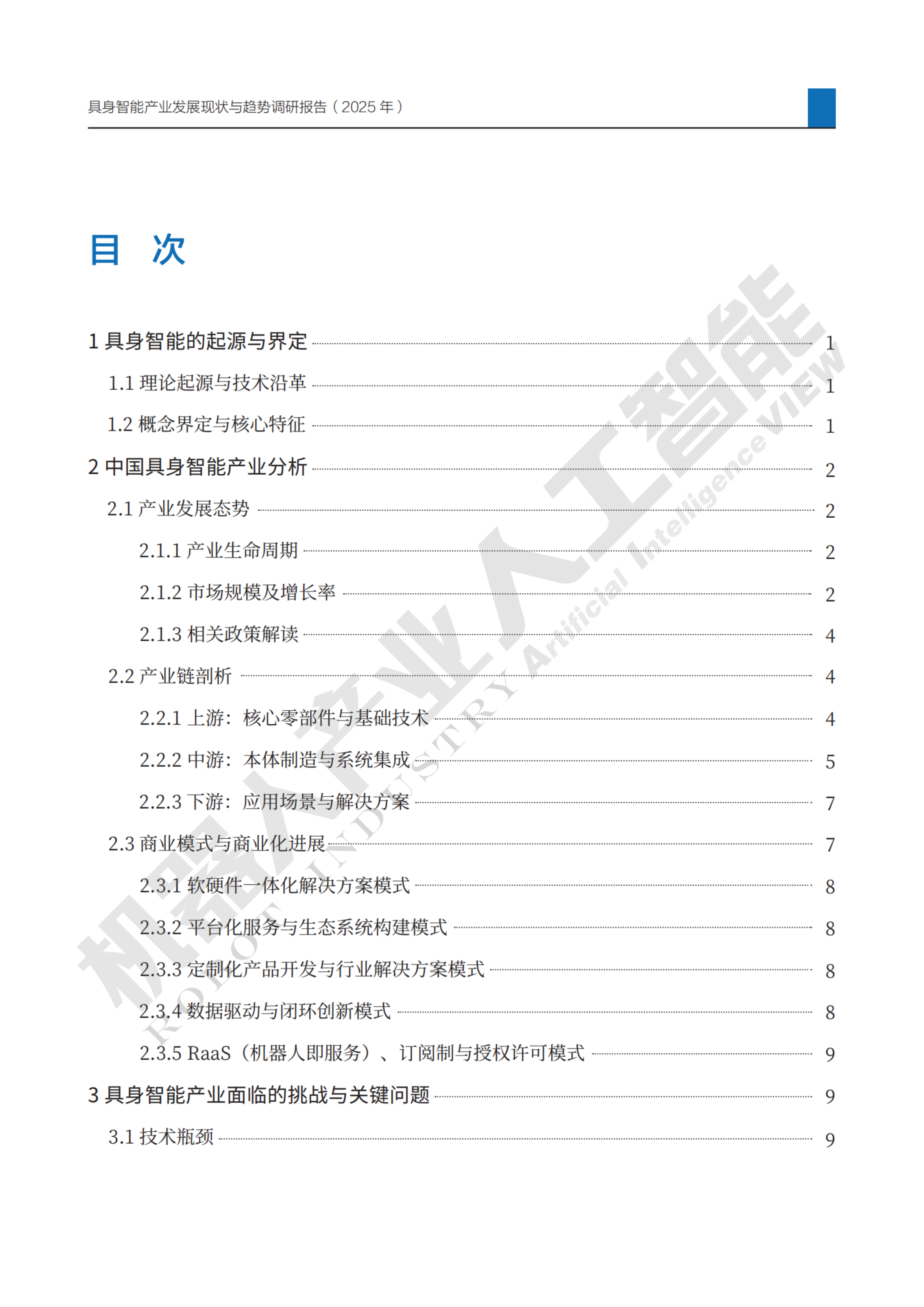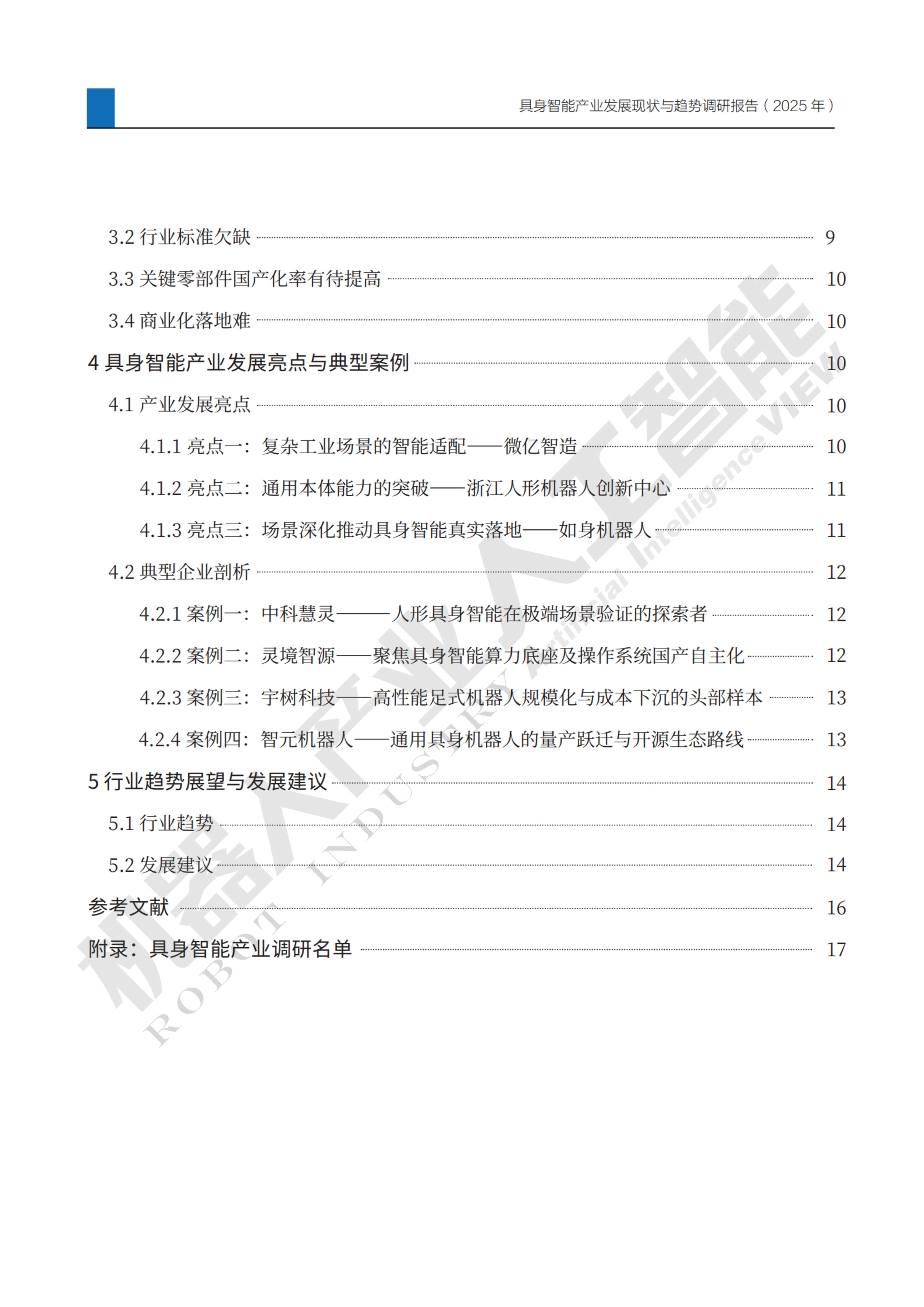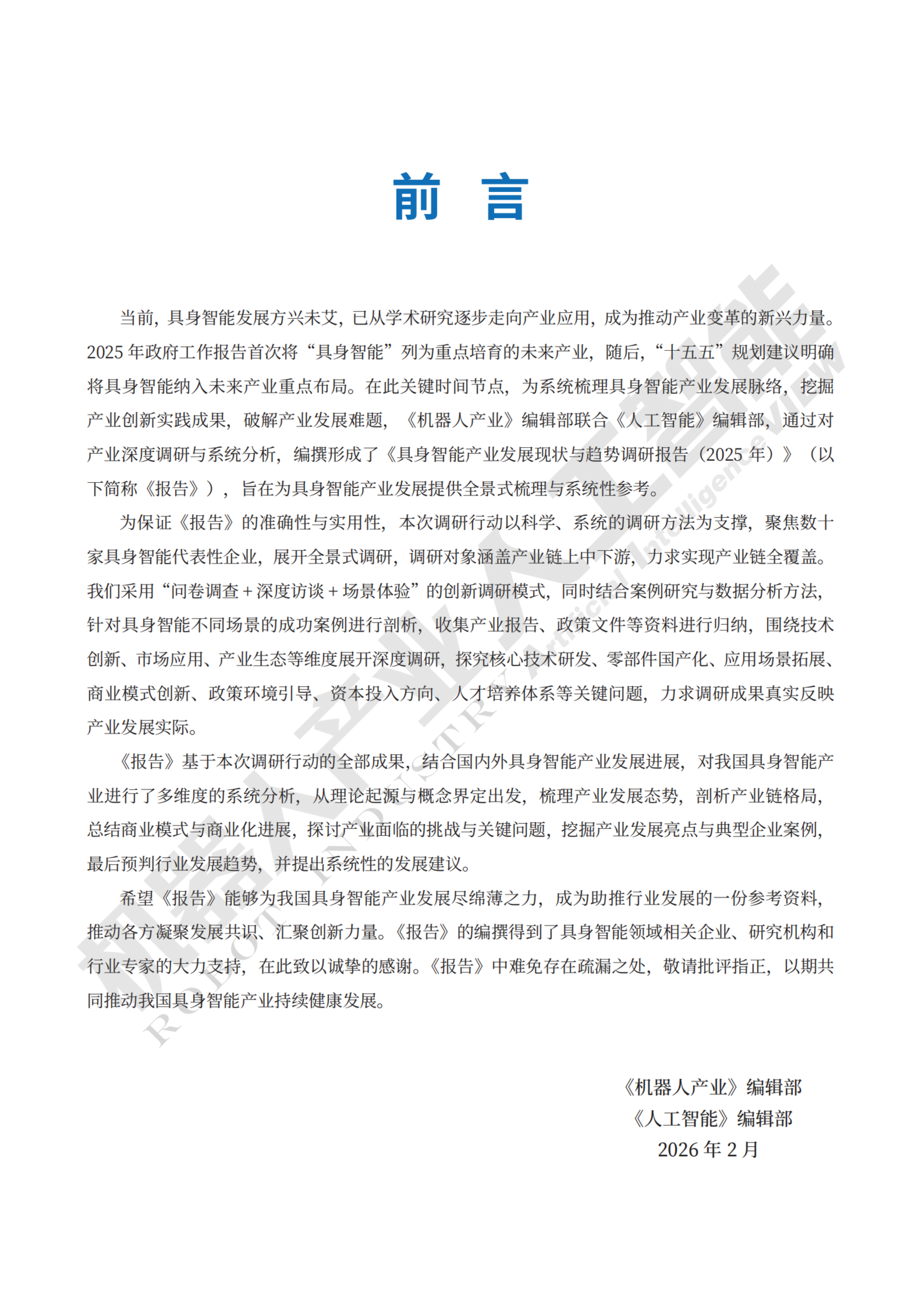 《报告》基于本次调研行动的全部成果,结合国内外具身智能产业发展进展,对我国具身智能产业进行了多维度的系统分析,从理论起源与概念界定出发,梳理产业发展态势,剖析产业链格局,总结商业模式与商业化进展,探讨产业面临的挑战与关键问题,挖掘产业发展亮点与典型企业案例,最后预判行业发展趋势,并提出系统性的发展建议。