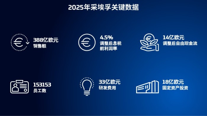 调整后息税前利润17亿欧元(2024年:15亿欧元),对应调整后息税前利润率4.5%(2024年:3.5%);剔除并购影响,调整后自由现金流14亿欧元(2024年:3.05亿欧元)。
