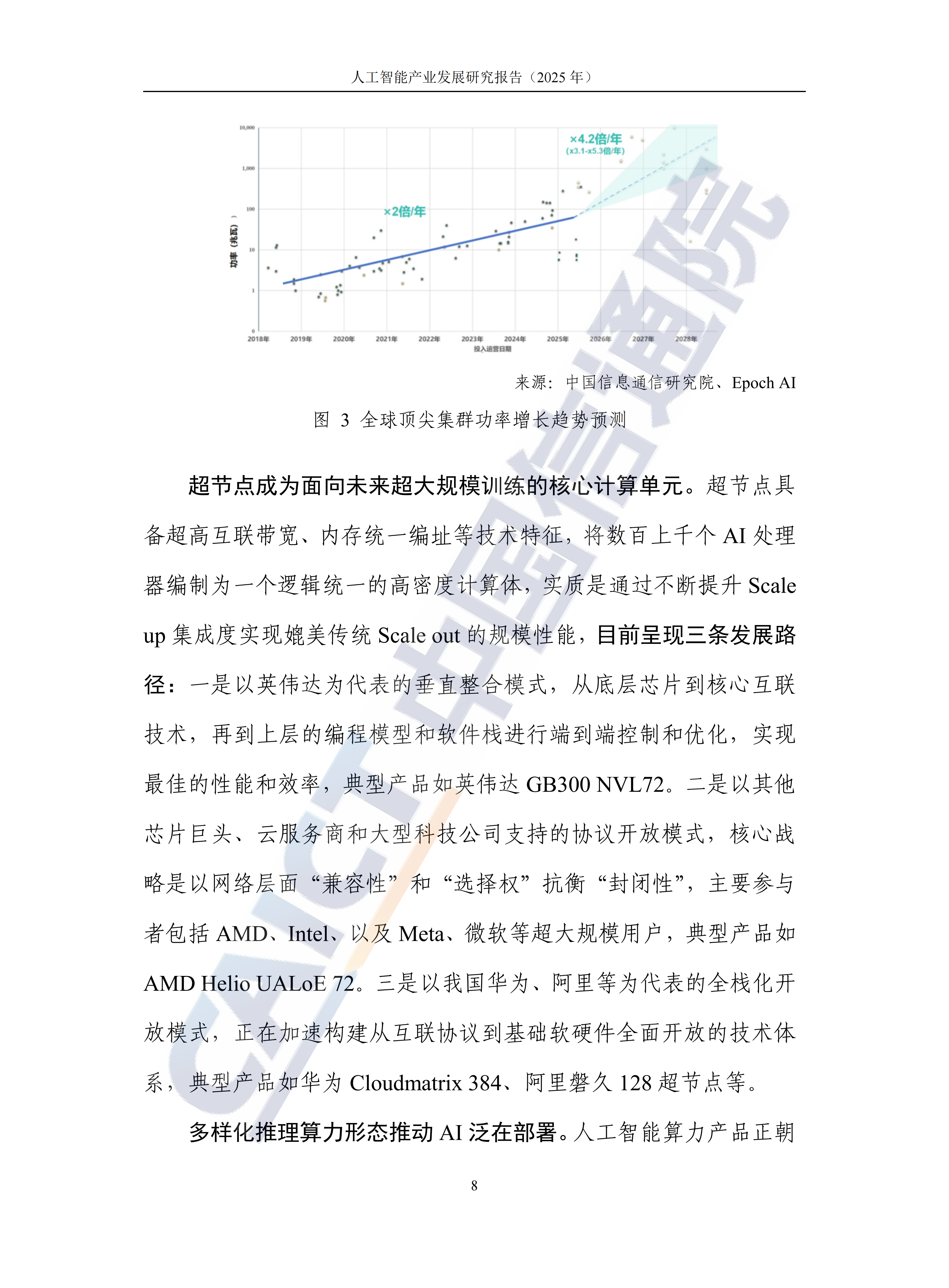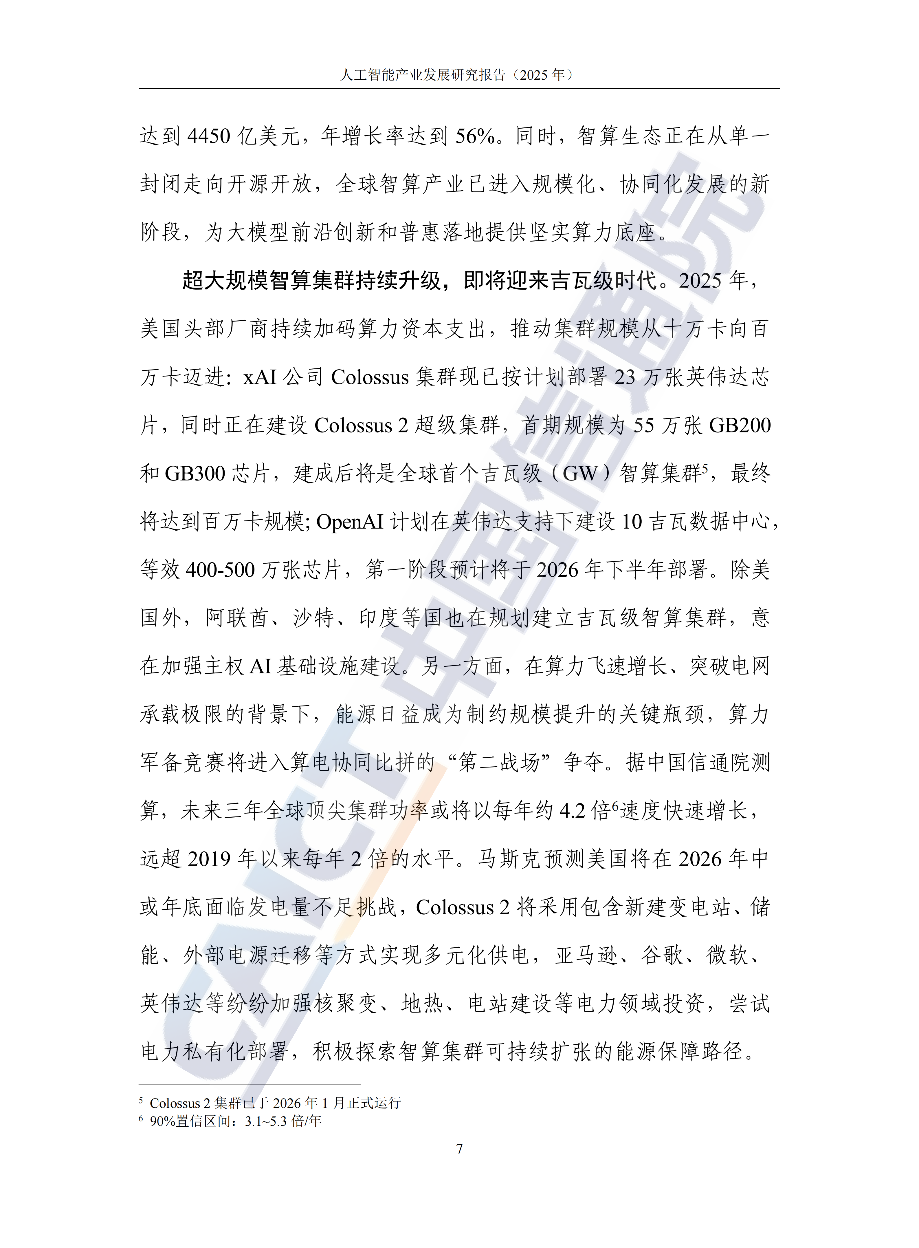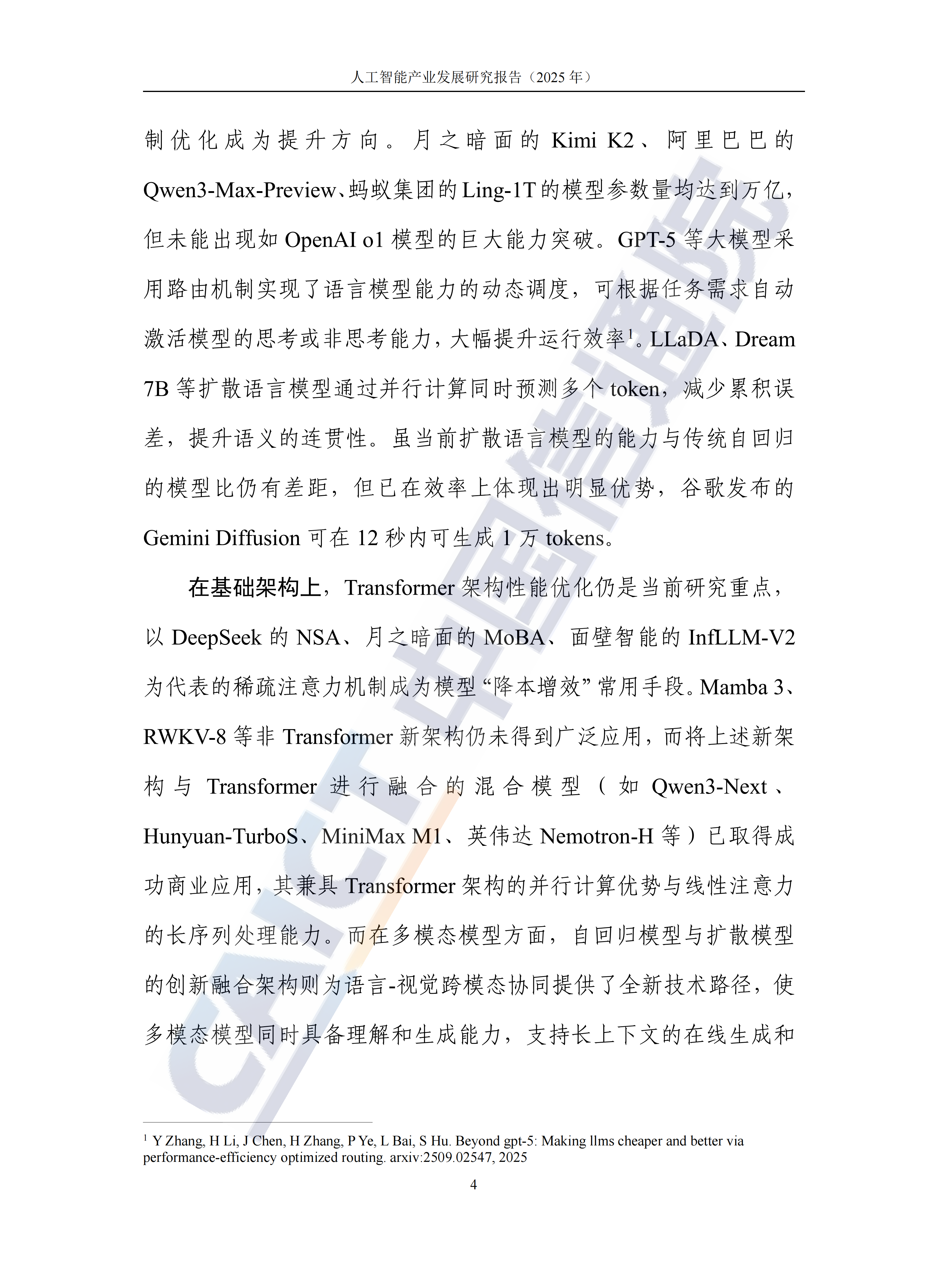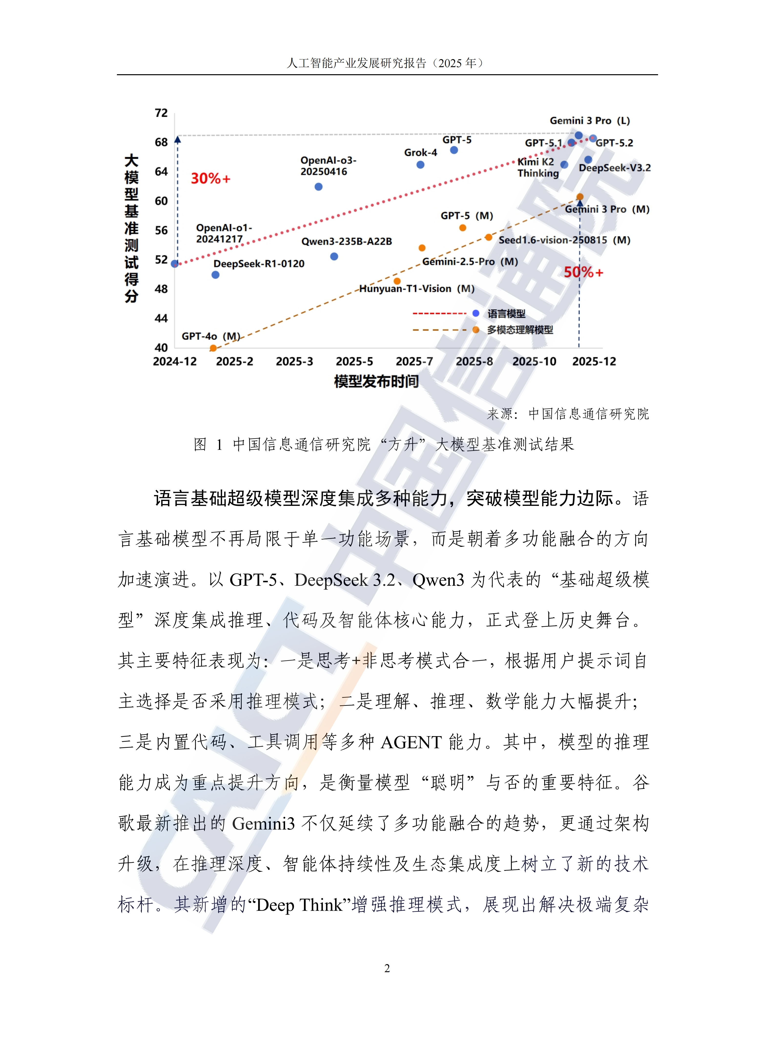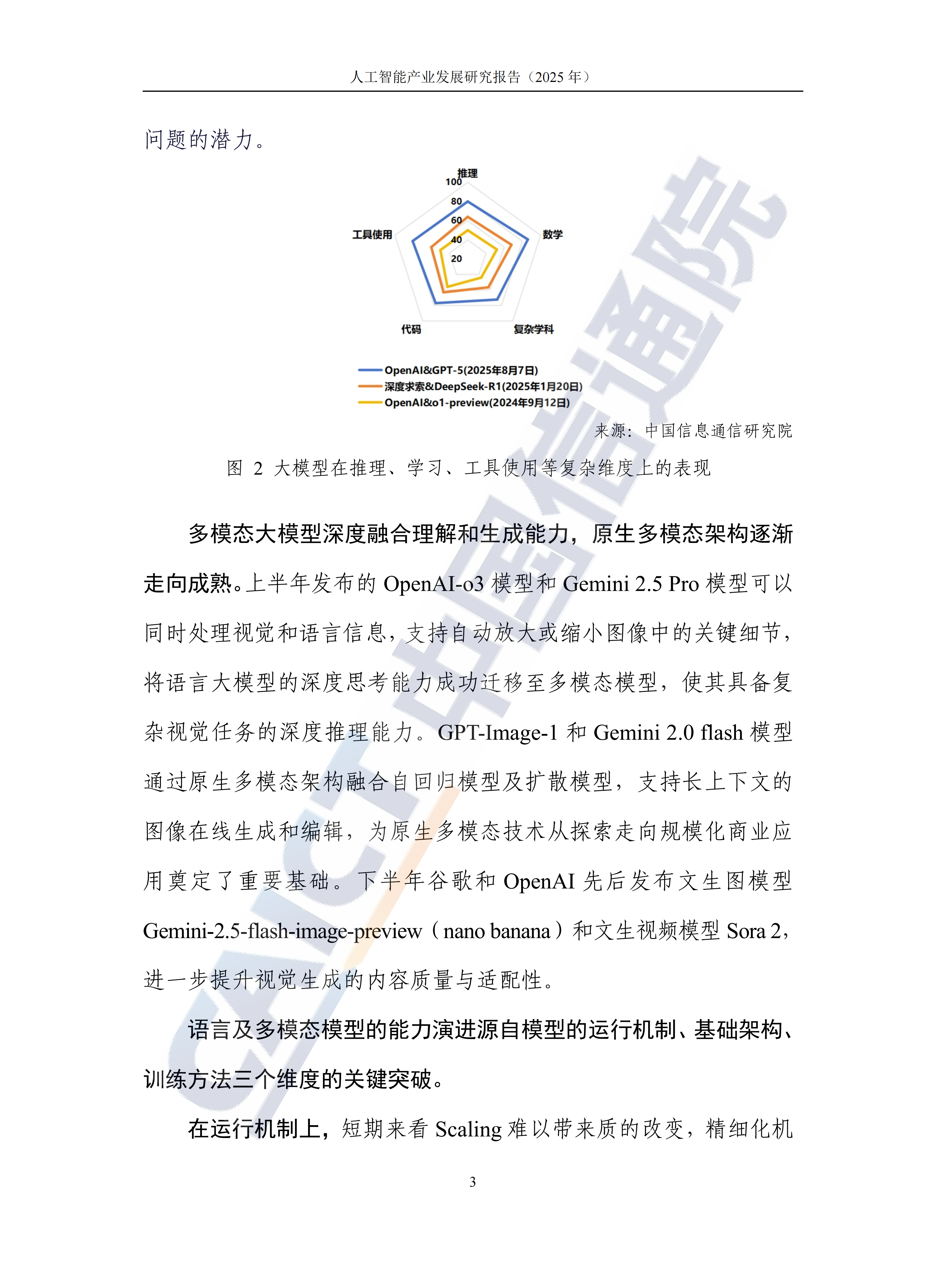 应用方面,人工智能加速在一二三产业融合渗透,助力农业降本增产,加速推进赋能新型工业化进程,深化服务场景智能化新业态。智能原生成为“AI+”新内核,大模型深度嵌入工具软件,代码编写、深度研究等智能原生软件加速数字生产力跃升,新一代智能终端等硬件产品重构人机交互模式,人工智能角色从“智能工具”逐步演变为“共生伙伴”。