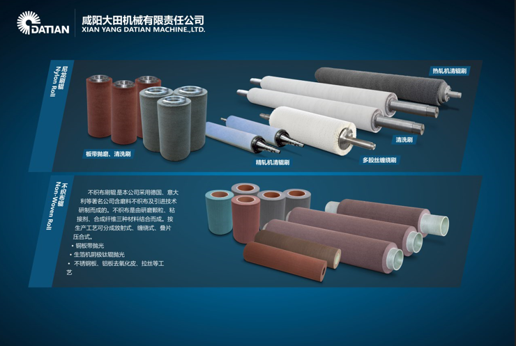 本公司是专业生产工业刷辊,产品有:单双钢带缠绕式、压片组合式、植毛式圆盘式、密封式(条刷)、不织布3M刷辊、橡胶辊、海绵吸水辊、剑麻砂纸条、钢丝刷、除毛刺研磨刷、抛光布辊等。