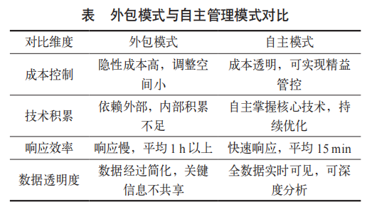 然而,随着内外部环境的变化,外包管理模式固有的局限性愈发成为企业进一步发展的制约因素。通过对该车间化学品管理需求的深入调研与分析,对比外包模式与自主管理模式(见表),外包管理模式主要存在四个方面的问题。