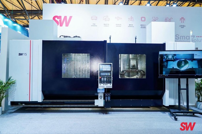 呼应本次展会“数字・互联・智造”主题, SW 以“best per part(单件最佳)”为核心理念,集中呈现了面向新能源汽车、航空航天、医疗、具身机器人、通用机械等领域的高效柔性加工方案,通过机床、夹具、上下料系统的全链条创新,展示了从批量高效生产到多品种小批量柔性智造的跨越。